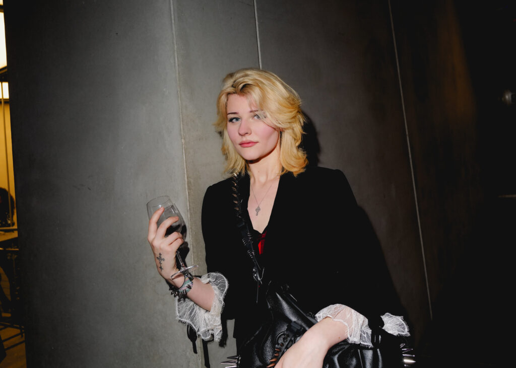 The Dare goes on and everyone rushes the dance floor: art world It Girl Molly Krause (in a puffy, multicolor Christopher Raxxy dress), Ally Shapiro, Leo Braudy, Ernie Poma, Jake Rosenblüth, Logan Horne, Casey Kohlberg and Polina Proshkina. The scene is a swirly sea of New York socials in colors, patterns and sparkles.
