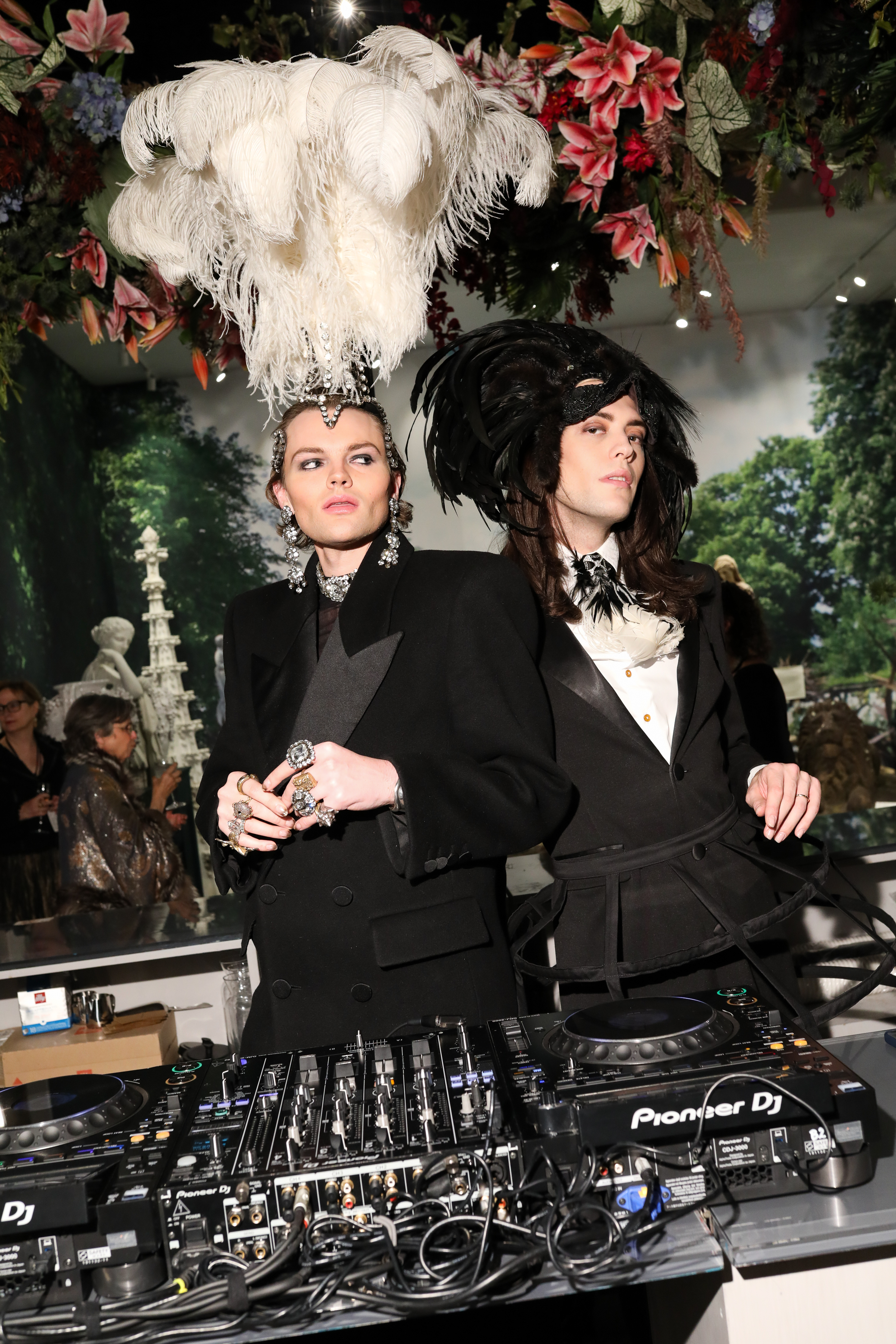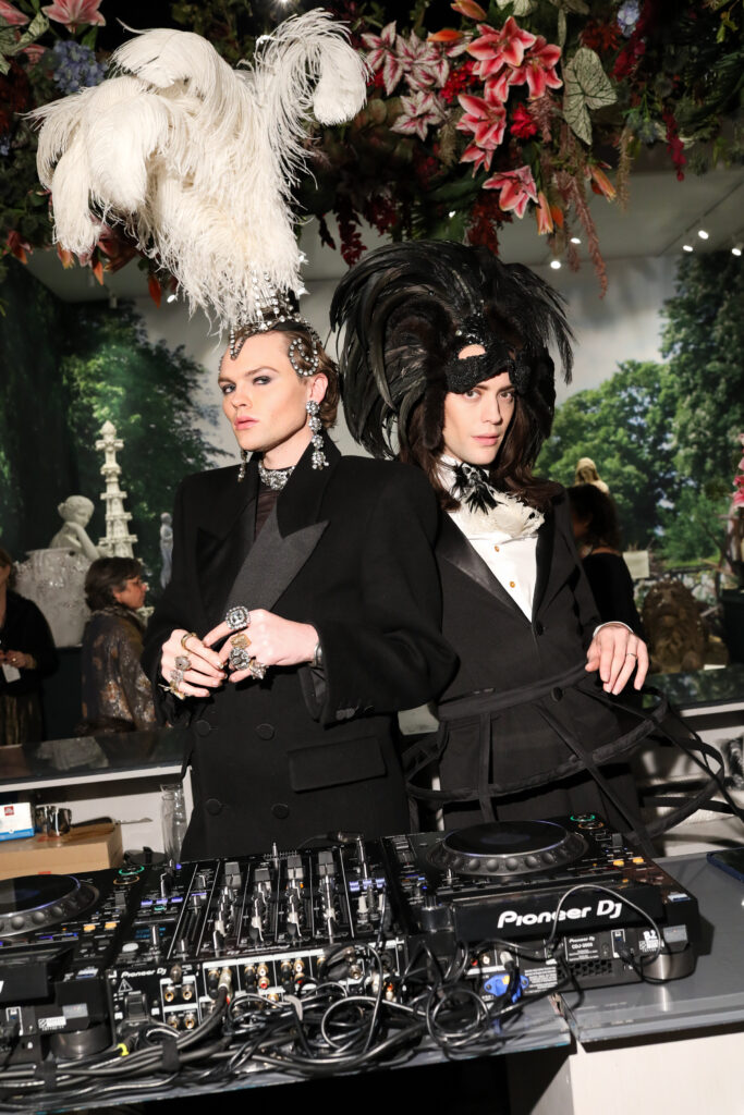 I wear a Schiaparelli cowboy shirt and Paula Saunders is in a Katarzyna Cichy silk cape. Amongst the art and antiques everywhere, we bump into Casey Kohlberg, Polina Proshkina, designer Bach Mai and Eric Viner. “Tonight is a great example of how thoughtfully curated art can spark connection and purpose,” Laura Day Webb says. “The evening is so visually compelling.” Nearby, Deanna First does a fashion illustration with quick, confidant strokes of a guest in a Carolina Herrera dress. The vibe is high fashion meets art world cool. I spot the Muses – Daniel Walters and Jack James Busa – the style set’s favorite DJ team. “From decorum to dress code,” Walters announces. “Art people are aesthetically out-lapping fashion people in New York City.” – ALEXANDER HANKIN