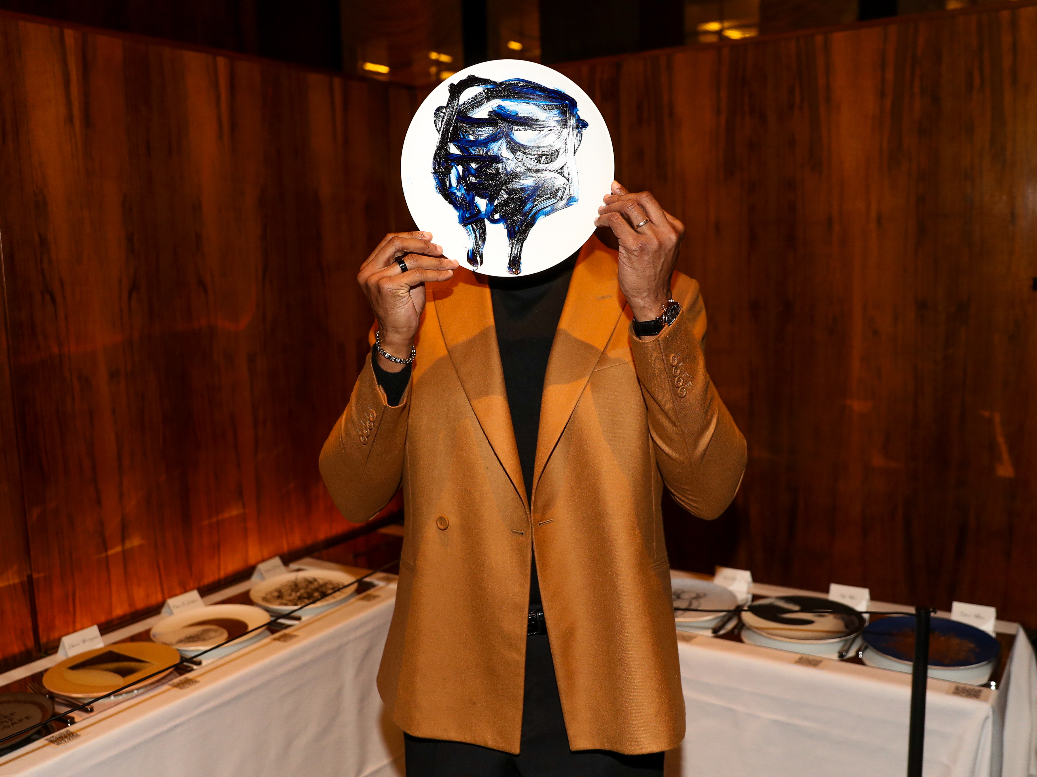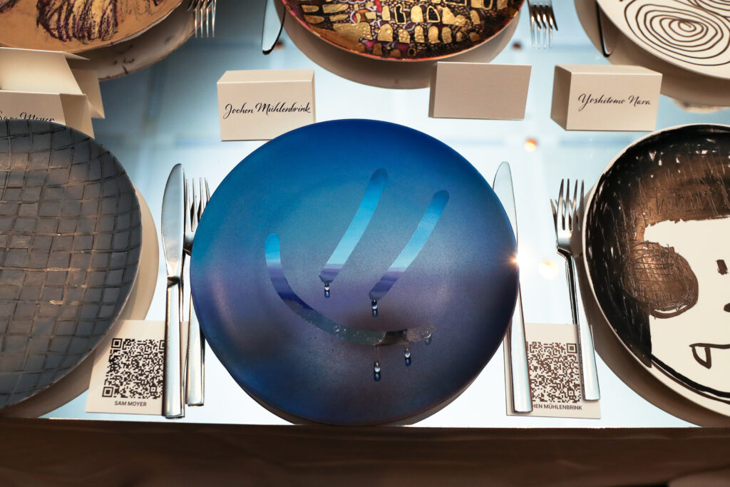 The now-famous Artist Plate Project is the brainchild of Michelle Hellman. “Without these artists, generous supporters and these damn plates, the Coalition’s work simply would not be possible,” Hellman tells the crowd over dinner. “Let’s embrace the irony and the absurdity, because that’s what makes the city so extraordinary. ARTWALK NY’s annual gala supports the work of the Coalition for the Homeless. At the GRILL in the Seagram Building, I see author Sarah Hoover chatting with Casey Fremont and Polina Proskina with artist Nick Moss. I wave across the packed room to Nicole Miller and artist Zoe Buckman. On display: nearly 100 highly collectible art plates, all up for a silent auction (and bidding battles). Painted on fine bone china, the plates are by art stars like Cecily Brown, Hank Willis Thomas, Jenny Holzer, KAWS and Urs Fischer to name just a few.