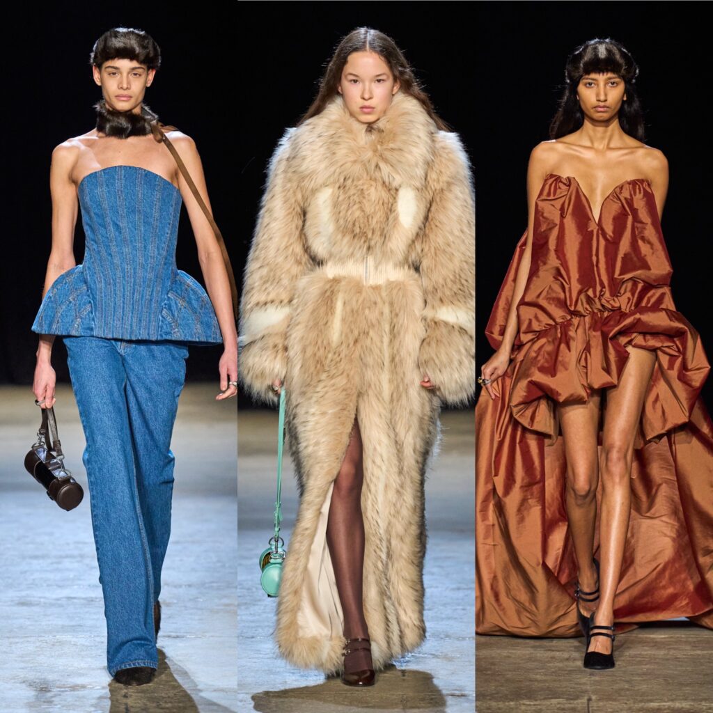I take my couture background and translate that into this more contemporary, younger vibe. We introduced corsets. Corsets are very sculptural, with three kinds of wiring—horizontal, diagonal, and vertical. That’s new – the extreme shapes. All the ballgowns I’ve been draping myself on the stand. I didn’t show them all, I promise.