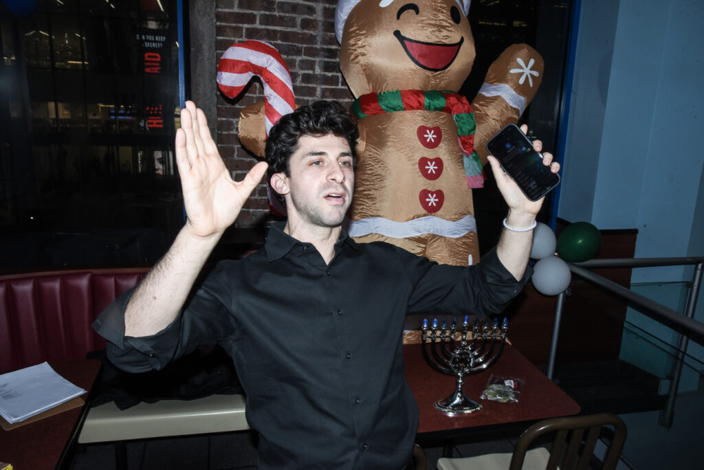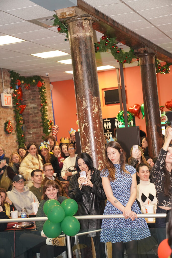 Lukas Gage is still MIA. Starr starts the show, dedicating it to the late Rob Reiner, inviting a “rabbi” in a Burger King cardboard crown and tinted aviator glasses to light a menorah and then reads from his book of poetry Mouthful. The line-up is impressive. In front of a huge inflatable gingerbread man, Sex and the City scribe Candace Bushnell announces she is doing a scene from her one-woman play. “It’s probably really cringe as young people would say,” Bushnell says. “I’m going to do it anyway.” Bushnell then dramatically recounts an awkward threesome when she first moved to Manhattan. Guests hike their iPhones above head, recording Bushnell, who looks spectacular in a short black leather skirt and thigh-high boots. Lili Anolik, author of Didion and Babitz, recites salacious sections from her podcast Once Upon a Time in the Valley which chronicles porn star Traci Lords’ roller-coaster career in adult entertainment. Carole Radziwill, famous for her stint on “The Real Housewives of New York,” choses Jenna Jameson’s 2010 memoir How to Make Love Like a Porn Star: A Cautionary Tale. “When my first book came out, it made the New York Times bestseller list,” Radziwill informs the audience. “Guess who was on top of me? Jenna Jameson. I know there’s a joke there somewhere, but I’m not smart enough to figure that out.”