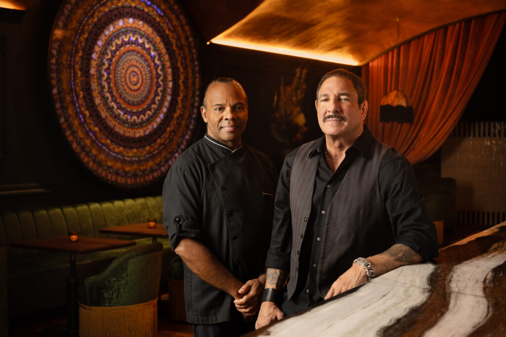 Three leggy blondes in skinny jeans sidle up to the bar and order martinis. Nearby, two guys in navy blue suits and John Lobb shoes ogle the modelesque girls before sending over Petrossian caviar (an expensive flirtation at $158). But before the fish eggs are spread, one of the girls jumps up and gallops towards the front door as if a fire alarm was pulled. Nur Khan, in his signature leather motorcycle vest and rock ‘n’ roll silver jewelry, has made his entrance. The girls surround Khan like adoring fans by the bar. Electronica music trills the room. A nightlife vet with 3 decades in the city’s late-night trenches, Khan is a pioneer of countless hot spots and a pied piper of cool. The Beautiful People trail Khan wherever he goes, starting in 1995 when he debuted Wax, a moody lounge with a tight door policy. Most recently, Khan opened Two Fifteen with hotelier and Studio 54 founder Ian Schrager in the Public Hotel. But the most ambitious and personal of all Khan’s project is his newest: Maison Nur, a sophisticated temple to fine dining in the unexpected location of the Bowery.