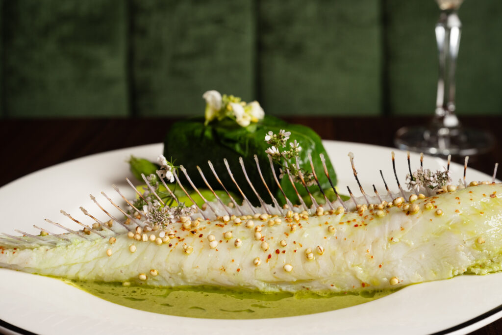 Khan is as serious about cuisine as he is about design. The French-American menu is by Paris native Richard Farnabe, who has won multiple Michelin stars and famously created the most expensive savory soufflé at Petrossian. “Maison Nur is the kind of place that guests can visit several times a week and discover dishes they cannot enjoy elsewhere,” Farnabe says. “It starts with superb ingredients—wild-caught fish, grass-fed beef, organic eggs, pure cane sugar.” Khan is thrilled to partner with Farnabe on the food. “We have given Richard full creative freedom to express his vision and cook from his heart.”