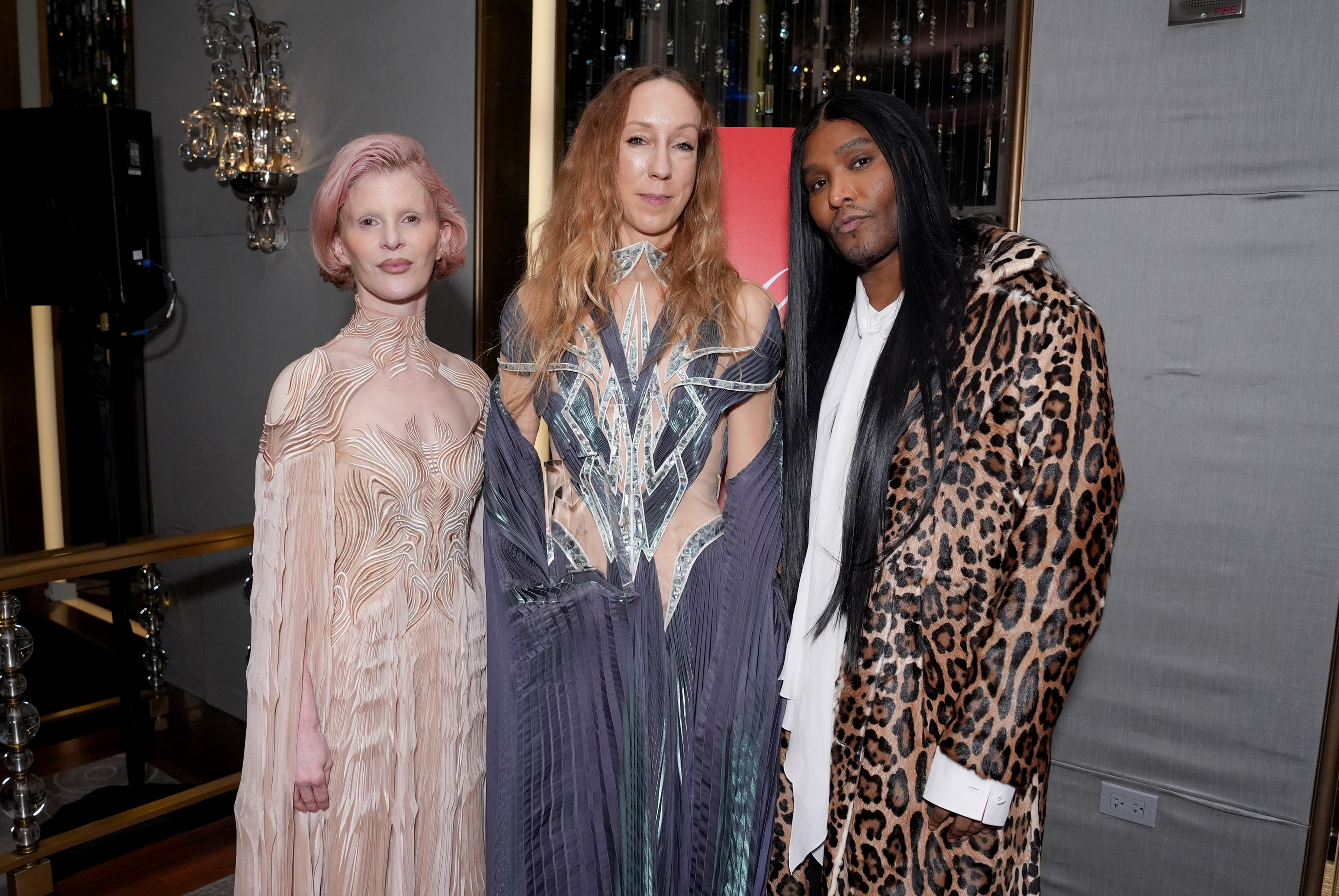The night closes with Aïda Moudachirou-Rébois, MAC Cosmetics’ Global SVP of Marketing, who accepts the “Changemaker” award and turns the stage into a celebration of inclusivity. Her words reframe beauty not as presentation, but as purpose – beauty as activism and inclusivity as luxury. The applause lasts long after Moudachirou-Rébois leaves the stage. That galvanizing energy permeates the room beyond the podium. Designer Epperson tells me his latest collection is built around romance, not as in “’I love you,’ but as in love yourself first, so you can love others.”